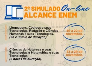 O Conselho de Altos Estudos e Assuntos Estratégicos da Assembleia Legislativa realiza entre os dias 16 e 29 de novembro, por meio da plataforma Alcance Virtual, o segundo simulado Alcance Enem 2020. O estudante interessado em participar do simulado Alcance Enem 2020 pode acessar a plataforma aqui no Link (https://bit.ly/3nnhxl0) e preencher as informações solicitadas para confirmar sua inscrição.