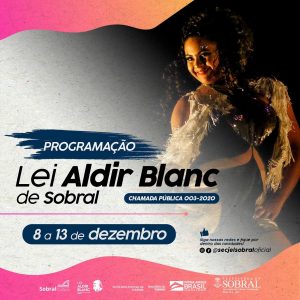 A Prefeitura de Sobral, divulga, nesta sexta-feira (04/12), a programação da Lei Aldir Blanc que será realizada de 8 a 13 de dezembro. Durante todo este mês, acontecerão diversas formações, apresentações e lançamentos de obras artísticas e culturais, de forma on-line.