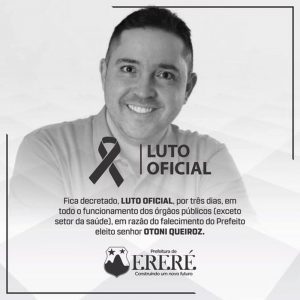 Emanuelle, a vice na chapa de Otoni e que exerce a titularidade da prefeitura, decretou luto oficial de três no município. Os órgãos públicos da cidade estarão sem funcionamento, exceto os de saúde, durante o luto. A chapa de Otoni e Emanuelle teve candidatura única em Ereré nas eleições de 2020.