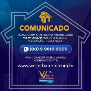 Acesse nosso site: wellerbarreto.com.br e solicite atendimento personalizado através do nosso WhatsApp, para informações, negociações e simulações.