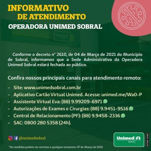 Devido ao decreto municipal, estão suspensos os atendimentos presenciais até o dia 21 de março.