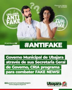Alvo de inúmeras tentativas de desestabilização por parte de pessoas maldosas que querem conturbar a difícil situação que o município de Ubajara, assim como outros municípios estão passando, a Prefeitura Municipal, por meio da Secretaria Geral de Governo e de sua Coordenação de Comunicação, criou o programa Ubajara ANTIFAKE, cujo objetivo é trazer a VERDADE a todos os Ubajarenses e tirar as dúvidas sobre informações falsas que circulam nas redes sociais.