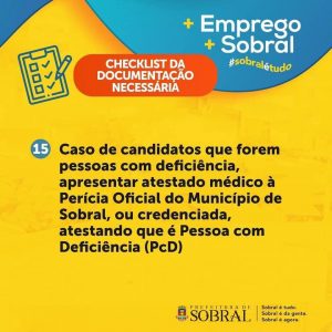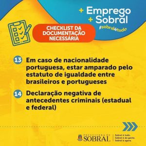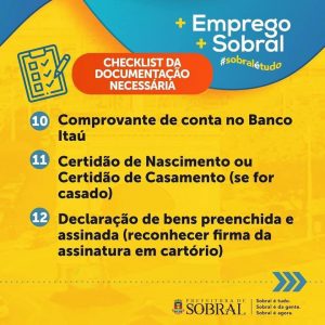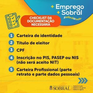Prefeitura de Sobral informa checklist dos documentos necessários para a assinatura de contratos do programa “Mais Emprego, Mais Sobral”