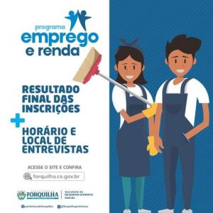 ➡ Confira o resultado final das inscrições para o processo seletivo do Programa Emprego e Renda da Prefeitura de Forquilha: