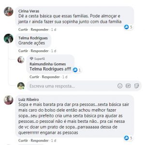 A ação, por mais que seja válida, não agradou a população ipueirense. O município possui cerca de 38 mil habitantes, destes cerca de 53% vivem em situação de vulnerabilidade, tomando como base a média nacional, ou seja, 200 ‘pratos’ de sopa não representa uma ajuda significativa a quem tanto precisa.