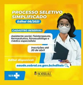 Prefeitura de Sobral seleciona profissionais de saúde em várias áreas