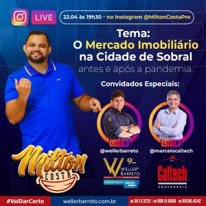 Acompanhe nesta quinta-feira, 22 de abril, no Instagram do digital influencer Milton Costa (@miltoncostapro) uma LIVE sobre o mercado imobiliário na cidade de Sobral antes e após a pandemia. No centro do debate, o realizador de sonhos Weller Barreto (@wellerbarreto) e o construtor de sonhos Marcelo Cavalcante (@marcelocaltech) 🏗🏢🏠🏘