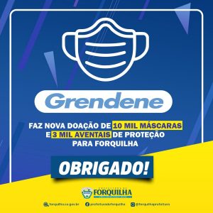As redes sociais da Prefeitura de Forquilha trouxeram nesta quinta-feira (6) uma mensagem especial de agradecimento a Grendene S/A, parceira da cidade, que novamente fez uma importante doação de EPIs à população forquilhense. Desta vez, foram 10 mil máscaras e 3 mil aventais doados, com a finalidade de contribuir no combate à pandemia de Covid-19.