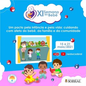 A Prefeitura de Sobral promove, de 15 a 21 de maio, a XI Semana do Bebê. Com o tema “Um pacto pela infância e pela vida: cuidando com afeto do bebê, da família e da comunidade”, o evento contará com diversas atividades, no formato on-line. Neste ano será assinada uma Carta Compromisso, que será lançada no painel de encerramento, no dia 21/05, selando o Pacto pela Infância e Pela Vida.