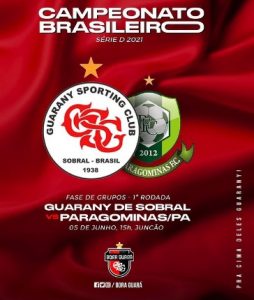 O Guarany já tem data para estrear no Campeonato Brasileiro Série D 2021. A CBF já divulgou a tabela detalhada da competição e daremos pontapé em nossa campanha rumo ao acesso a terceira divisão dia 05 de Junho, às 15h, no Estádio do Junco, diante do Paragominas/PA