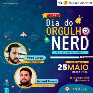 Se liga, juventudes!🖖 Para celebrar o Dia da Toalha em alto estilo, a Secretaria da Juventude, Esporte e Lazer (Secjel) realiza nesta terça-feira (25/05), às 19h, a live com o tema “Dia do Orgulho Nerd”. 🎮🕹🍿📚