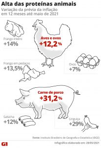 E, no dia 21 de maio, a Associação Brasileira de Proteína Animal (ABPA) alertou o governo federal de que “novas elevações nos preços” dessas proteínas podem ocorrer “nos próximos meses”, por causa da alta dos custos de produção do setor.