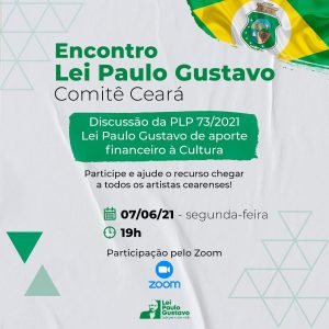 O Comitê do Ceará convida todos os agentes culturais do estado para a primeira plenária sobre a aprovação da Lei Paulo Gustavo (PLP 73/2021) e a regulamentação do Sistema Nacional de Cultura.