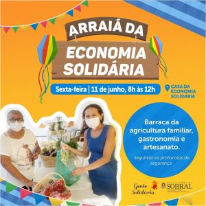 Na ocasião, haverá barracas temáticas vendendo comidas típicas juninas preparadas por grupos produtivos da agricultura familiar, da gastronomia e peças de artesanato. Os produtos da feira virtual, que podem ser encomendados pelo Instagram @economiasolidariasobral, são fornecidos por grupos produtivos da Casa da Economia Solidária.
