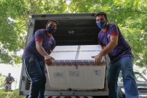 A nova remessa com 151.000 doses da Oxford/AstraZeneca/Fiocruz, que chegou ao Ceará nesta quarta-feira (9), vai permitir que os municípios cearenses continuem avançando na imunização da população contra a Covid-19. Na terça-feira (9), o Ceará recebeu mais de 97 mil doses da vacina da Pfizer/BioNtech.
