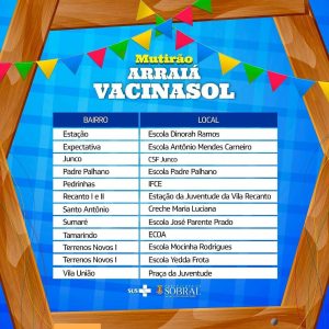Neste sábado (19/06), Sobral irá vacinar a população acima de 36 anos, nas escolas 😉