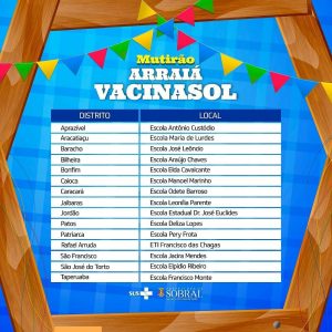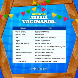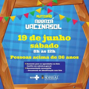Neste sábado (19/06), Sobral irá vacinar a população acima de 36 anos, nas escolas 😉