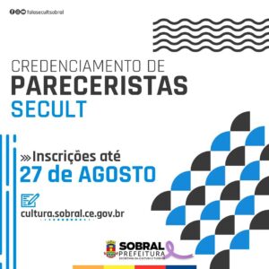 A Prefeitura de Sobral lançou o Edital de Credenciamento de Pareceristas – Chamamento Público nº 003/2021. O objetivo é selecionar serviços de parecer técnico para avaliação de projetos selecionados pelos editais publicados pela Secretaria da Cultura e Turismo (Secult).