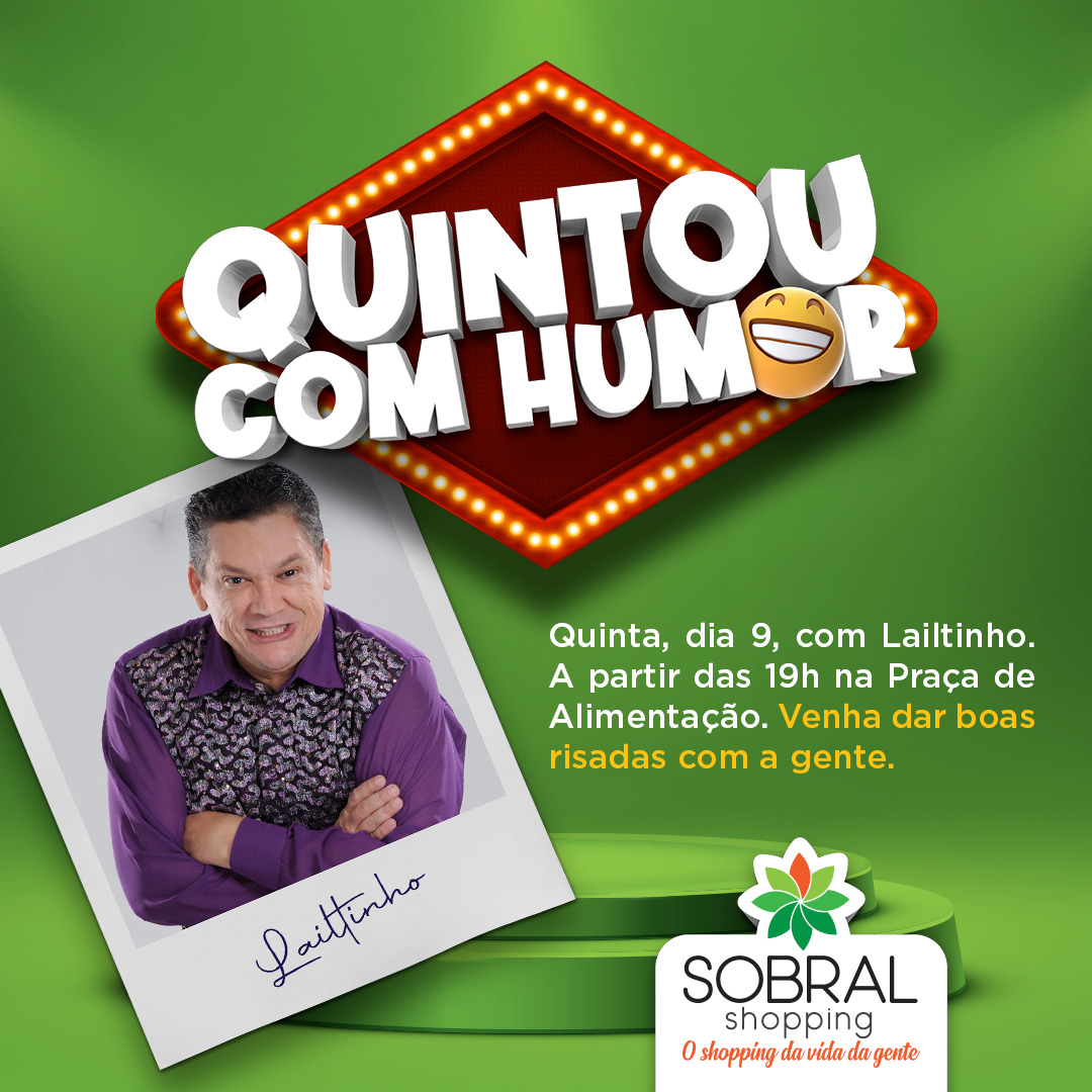 Buscando sempre o que há de melhor em termos de entretenimento para atender a exigente demanda de seus frequentadores, o Sobral Shopping traz de volta para sua praça de alimentação o projeto Quintou com Humor, com alguns dos mais importantes nomes da cena humorística do Ceará.