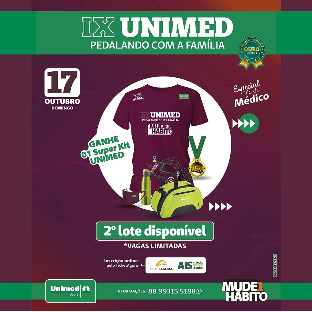 Inscrições para o IX Unimed Pedalando com a Família estão no segundo lote