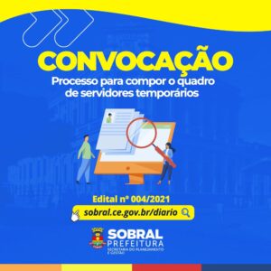 A Prefeitura de Sobral convoca os candidatos classificados no processo seletivo para compor o quadro de servidores temporários na Secretaria do Urbanismo e Meio Ambiente (Seuma), referente ao Edital nº 004/2021.