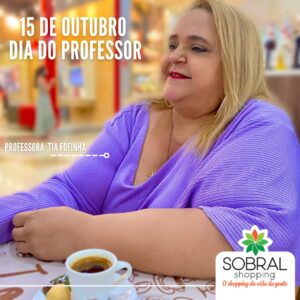 Para reconhecer todo esse esforço, dedicação e carinho, nós do Sobral Shopping queremos render nossa homenagem aos mais de três mil educadores que atuam na rede pública e privada, da pré escola a universidade, em nome da professora Sandra Cândido, ou simplesmente Tia Fofinha, como ela ficou conhecida por seus métodos lúdicos de repassar o seu conhecimento, que dá show em suas performances, que acolhe e ajuda a todos os que lhe procuram.