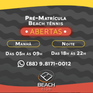A.T.E.N.Ç.Ã.O – O Beach Club, espaço de esporte e lazer que está sendo construído nas imediações do Parque da Cidade, começou nesta segunda-feira (25/10) o período de pré inscrições para sua escolinha de Beach Tennis.
