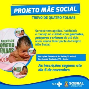 Se você tem aptidão, habilidade e manejo no cuidado com gestantes, puérperas e crianças de até dois anos, venha fazer parte do Projeto Mãe Social 🤍
