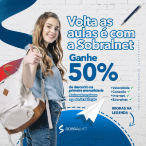 Durante o mês de janeiro com a volta as aulas a Sobralnet esta liberando 50% de desconto na primeira mensalidade nos planos a partir de R$ 79,90, essa você não pode perder!
