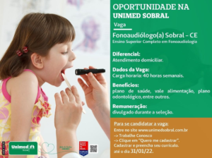 Unimed Sobral está com oportunidade de trabalho para Fonoaudióloga(o)