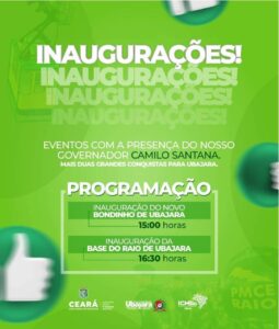 Governador Camilo Santana desembarca nesta terça-feira, 22 de fevereiro, na Serra da Ibiapaba. Vai a Ubajara entregar o novo Bondinho e a reforma da Gruta no Parque Nacional, a implantação de uma unidade do Batalhão RAIO e inaugurar o sistema de vídeo monitoramento local, para alegria do prefeito Renê Vasconcelos e do vice prefeito Adécio Muniz. O deputado federal Leônidas Cristino, representante do município na Câmara Federal, e um dos entusiastas dessas melhorias para o população ubajarense estará no evento como convidado especial do governador Camilo Santana.