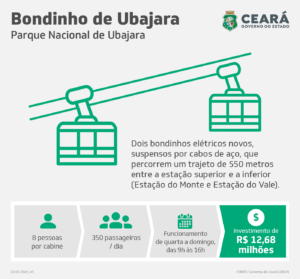 O equipamento, localizado dentro do Parque Nacional de Ubajara, funcionará de quarta-feira a domingo, das 9h às 16 horas. Até 350 pessoas poderão fazer o passeio por dia e nenhuma taxa será cobrada enquanto perdurar a operação assistida do Bondinho.