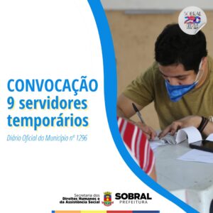Por meio do Edital de Convocação 02/2022, a Secretaria dos Direitos Humanos e da Assistência Social (Sedhas) convoca nove candidatos aprovados no Edital 001/2021 para a formalização de contratos temporários. O documento foi publicado no Diário Oficial do Município (DOM) 1296, de 28 de março (p. 8).