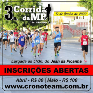 A MB Sports Assessoria informa que as INSCRIÇÕES da 3ª Corrida da MB – 7 Km • 14 Km • 21 Km estão a todo vapor! Acesse o site www.cronoteam.com.br ou vá até a Tenda da MB, armada diariamente na esquina do Centro de Convenções de Sobral, e faça a sua INSCRIÇÃO! Quer garantir a sua?! Cooorre e faz logo, pra não ficar de fora!