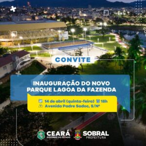 A Prefeitura de Sobral convida para a inauguração do novo Parque Lagoa da Fazenda. A solenidade será realizada nesta quinta-feira (14/04), às 18 horas.