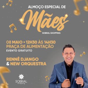 O Dia das Mães promete ser especial no seu Shopping. No domingo, 8 de maio, das 12h30 às 14h30, o show com Rennê Django & New Orquestra farão um espetáculo especial para homenagear as nossas rainhas. E você, sua mãe e sua família são nossos convidados especiais.