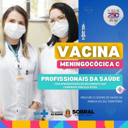 Já está disponível, em todos os Centros de Saúde da Família (CSFs) da sede e dos distritos, a vacina para profissionais de saúde contra a meningite C. Para se vacinar, o profissional deve comparecer ao CSF do seu território, com documento com foto e documento comprovatório de vinculo empregatício.