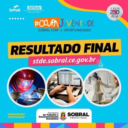 A Prefeitura de Sobral, através da Secretaria do Trabalho e Desenvolvimento Econômico, divulgou o resultado final do programa #OcupaJuventude, que, neste segundo edital, irá promover qualificação profissional e preparar jovens, de 16 a 29 anos, para o mercado de trabalho, por meio dos projetos Capacita, Qualifica e Sobral Profissionalizado. A programação completa dos cursos será postada em breve nas redes sociais da STDE!