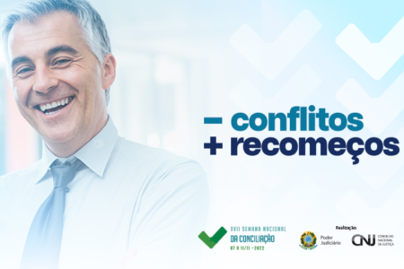 Menos conflitos e mais recomeços: esse é o mote da XVII Semana Nacional de Conciliação, promovida pelo Conselho Nacional de Justiça (CNJ), que acontecerá de 7 a 11 de novembro. Realizada anualmente, a Semana é um esforço coletivo do Poder Judiciário, concentrado em conciliar o maior número possível de processos em todo o país. A meta da campanha é resolver os conflitos diante da Justiça em menos tempo, com menos burocracia e contribuição de todas as partes envolvidas.