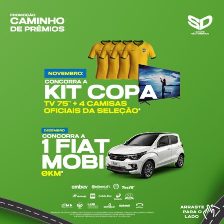 👉🏼 Garanta sua chance e concorra a 01 TV 75″ + 04 camisas oficiais da seleção, você também pode ter a chance de concorrer a 01 FIAT MOBI 0KM. Arraste para o lado e confira como obter o seu número da sorte.