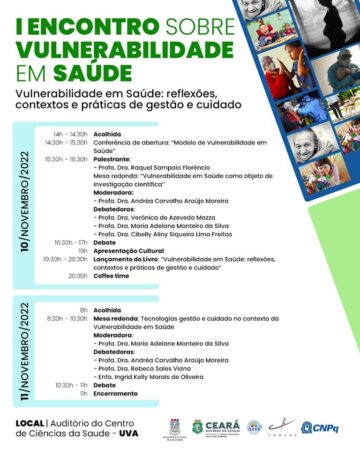 Durante o encontro teremos o lançamento do livro “Vulnerabilidade em Saúde: reflexões, contextos e práticas de gestão e cuidado”.