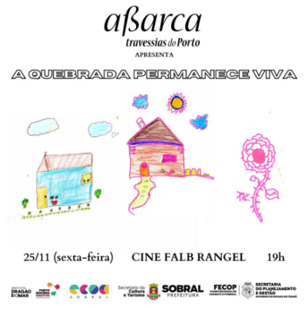Nessa sexta-feira (25/11), às 19h, no Cine Falb Rangel (Casa de Cultura de Sobral), será a estreia do filme A QUEBRADA PERMANECE VIVA. A obra é produção da turma do Percurso de audiovisual do Projeto aBarca, módulo 5: PREAMAR, com mediação, tutoria e curadoria de kulumym-açu (@kulumym).