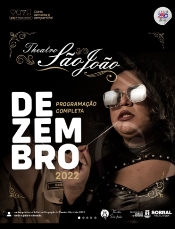 A Prefeitura de Sobral, por meio da Secretaria da Cultura e Turismo (Secult), apresenta a programação de espetáculos do Theatro São João para o mês de dezembro. As apresentações