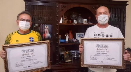 Leônidas Cristino entrega a Ivo Gomes diplomas conquistados por Sobral no Prêmio Band Cidades Excelentes