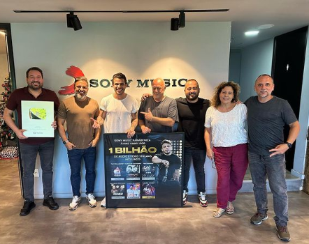 O cantor sobralense Avine Vinny, ao lado do seu empresário Armando Carneiro, esteve nesta segunda-feira (12/12) na sede da gravadora Sony Music, no Rio de Janeiro. Ali, recebeu das mãos dos diretores da gravadora placa comemorativa pela marca de 1 bilhão de streamings conquistados nas principais plataformas brasileiras.
