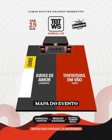 Próxima terça-feira, 20 de dezembro, começa a venda dos ingressos para o TBT WS Sobral! Confira o mapa do evento e já fique de olho no seu setor.