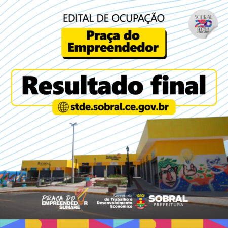 A Prefeitura de Sobral divulgou, nesta quarta-feira (14/12), o resultado final do edital de ocupação da Praça do Empreendedor do bairro Sumaré. Os candidatos podem conferir sua classificação por meio do Diário Oficial do Município (DOM).