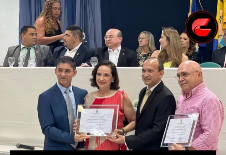 A sessão solene realizada no auditório da Escola Monsenhor Expedito da Silveira de Sousa contou com a presença de autoridades políticas do município e dezenas de outras figuras homenageadas.