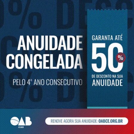 A Ordem dos Advogados do Brasil no Ceará (OAB-CE) decidiu, nessa segunda-feira (3), manter o valor da anuidade em 2022. Os boletos para pagamento da tarifa devem estar disponíveis ainda neste mês de janeiro.