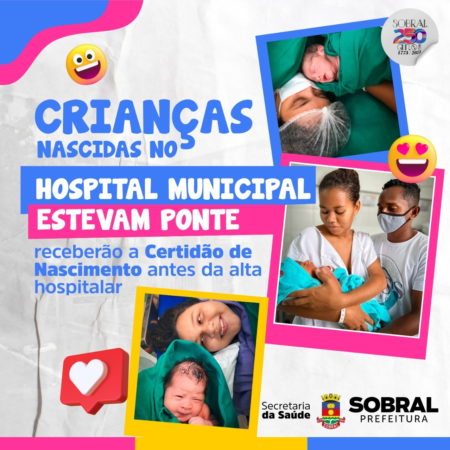 As crianças nascidas no Hospital Municipal Estevam Ponte (HMEP) receberão a Certidão de Nascimento antes da alta hospitalar. O serviço é oferecido em parceria com o Cartório do 4º Ofício de Sobral e faz parte da política nacional de erradicação do Sub-registro Civil de Nascimento.
